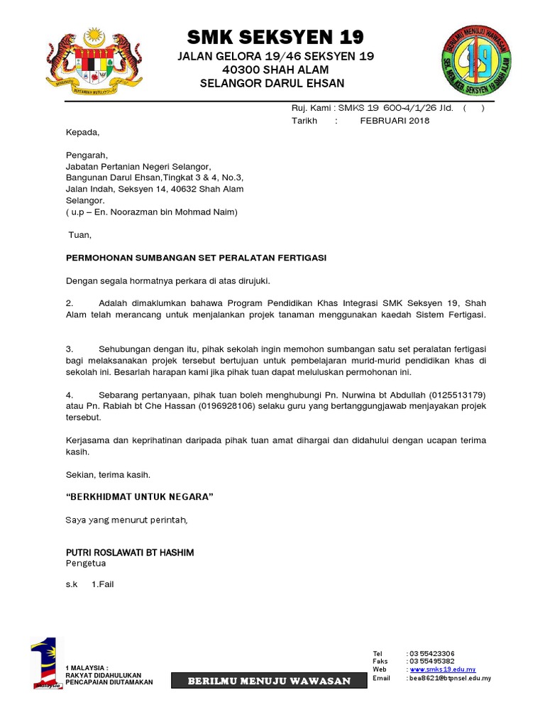 Surat Rasmi Permohonan Bantuan Laptop Letter 7saudara Com